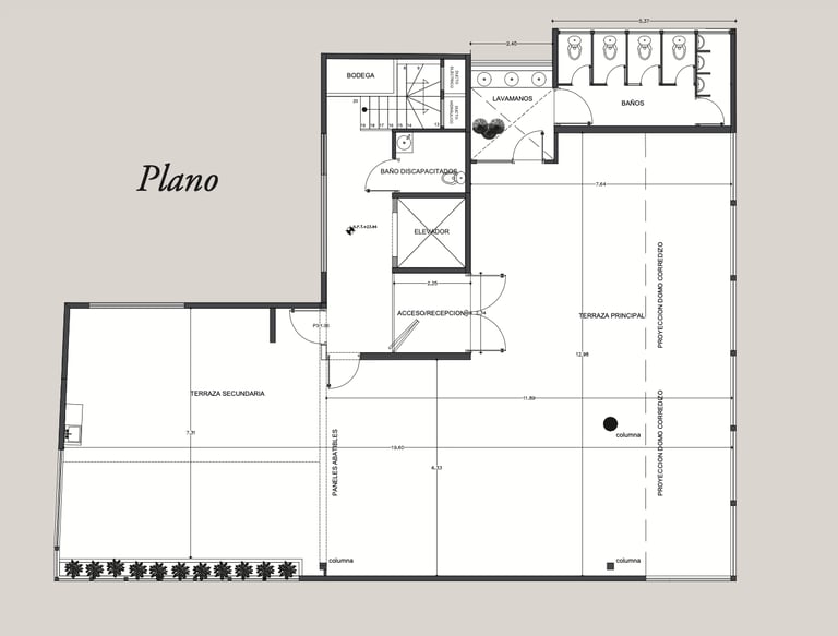 Techo del resto del salón: Estructura metálica con plafón de tablaroca.